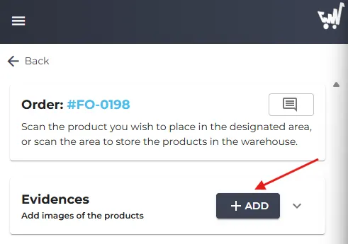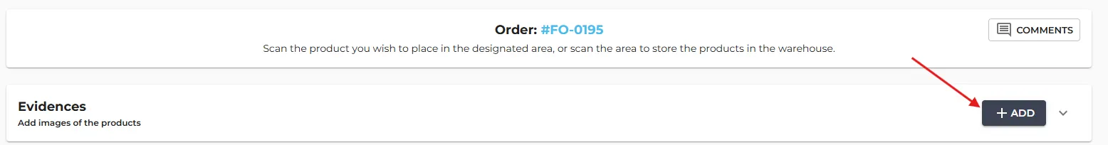 - Agregar Evidencias (opcional) Te permite añadir imágenes de los productos recibidos. Haz clic en el botón de “+ADD” para subir fotos de los productos, lo cual es útil para cualquier disputa o auditoría futura sobre el estado en que fueron recibidos.