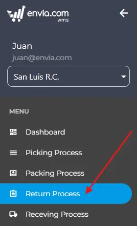 En el menú lateral izquierdo, haz clic en “Return Process” (Proceso de Devoluciones).