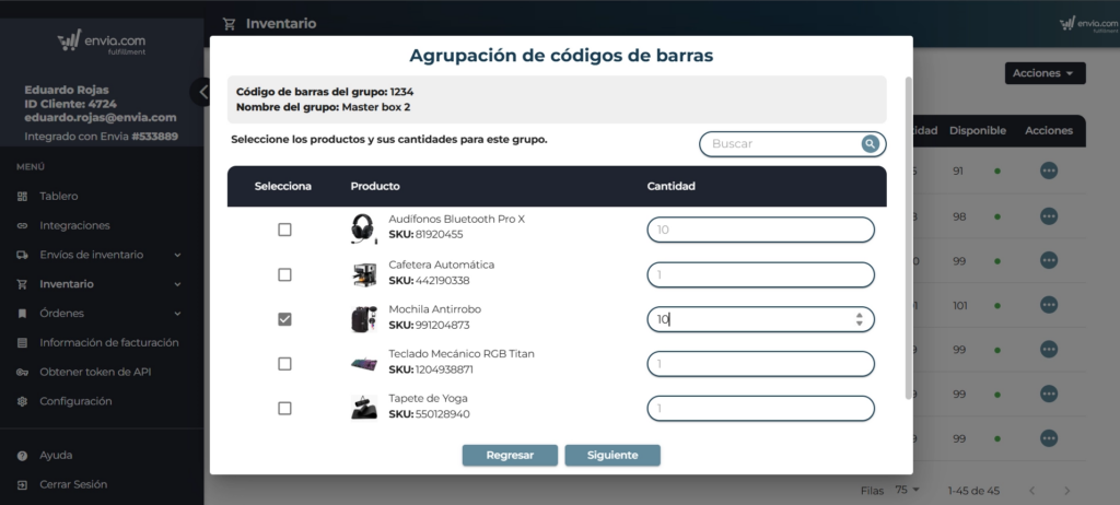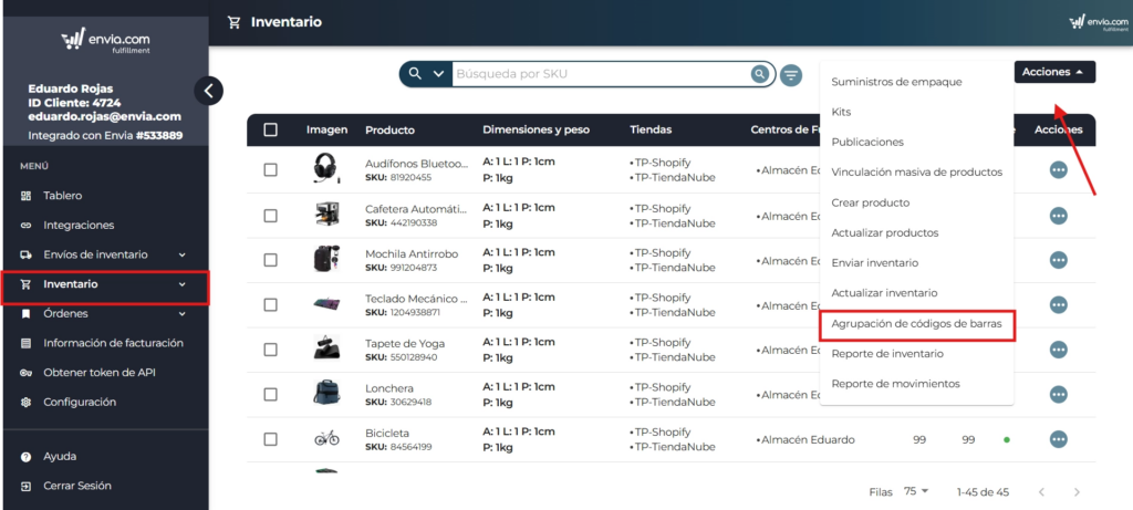 - Acceso a la sección de Inventario en la plataforma de Fulfillment.