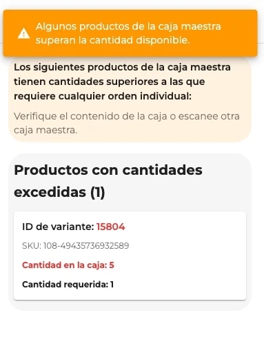 Quantities exceeded If the quantity of any product exceeds what you need to picke, the system will show a modal indicating which products have excess quantities. In this case: