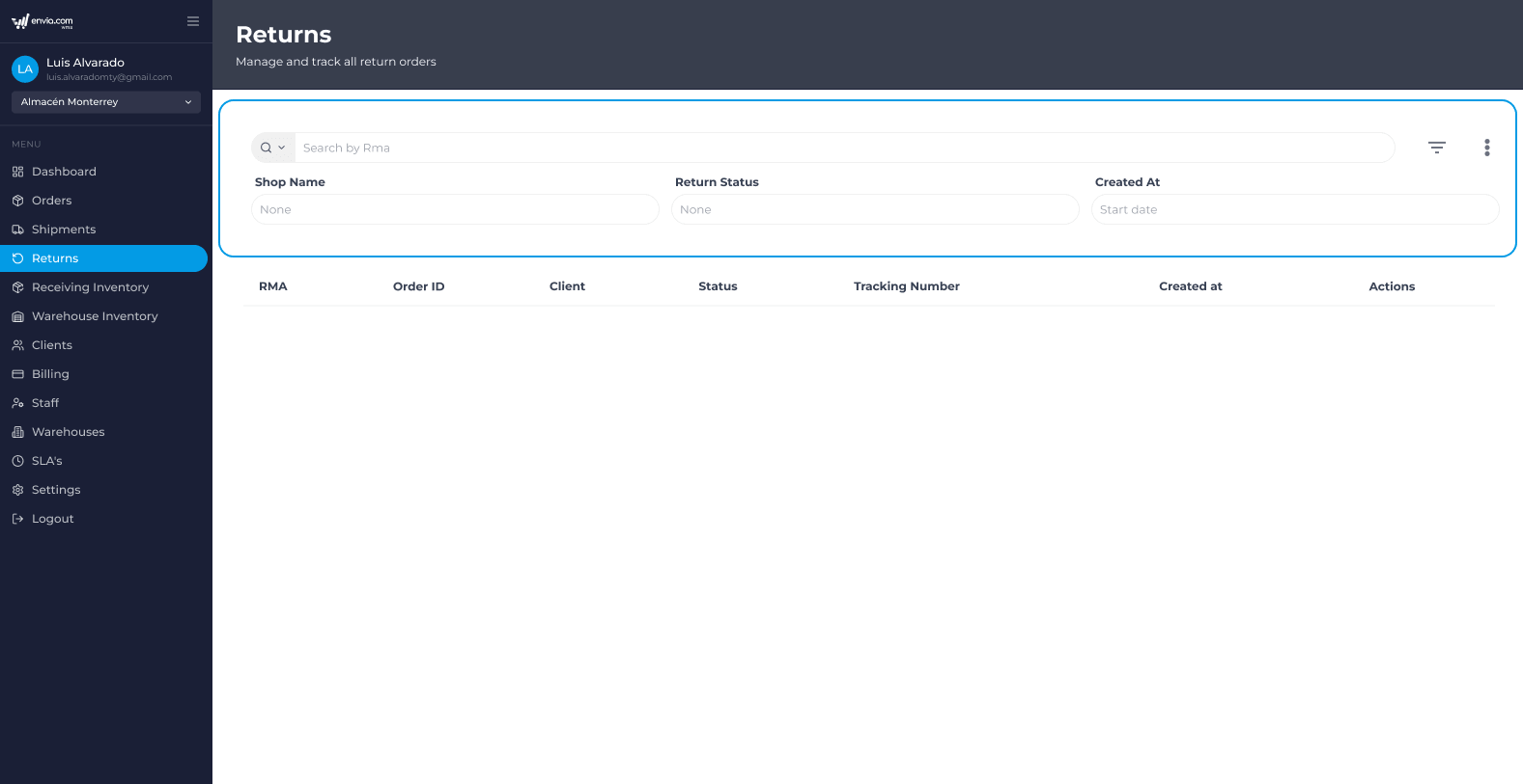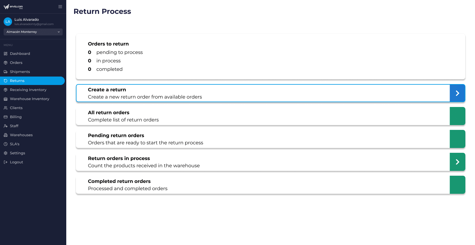 - Go to the section Returns Process