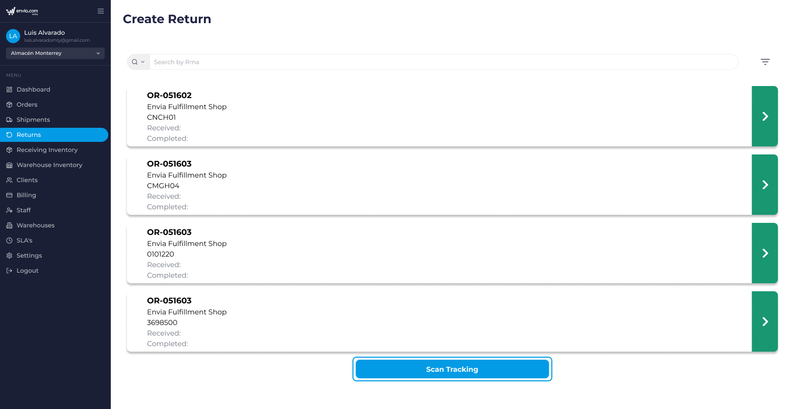 - Go to the section Returns from the main menu